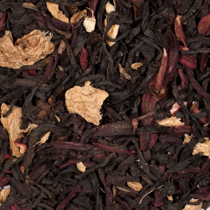 A black tea with hibiscus petals and ginger root.